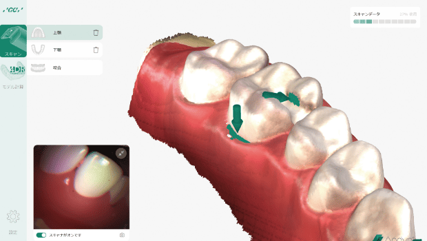 計測範囲が広いため、ロストしにくく全顎スキャンもスムーズです。