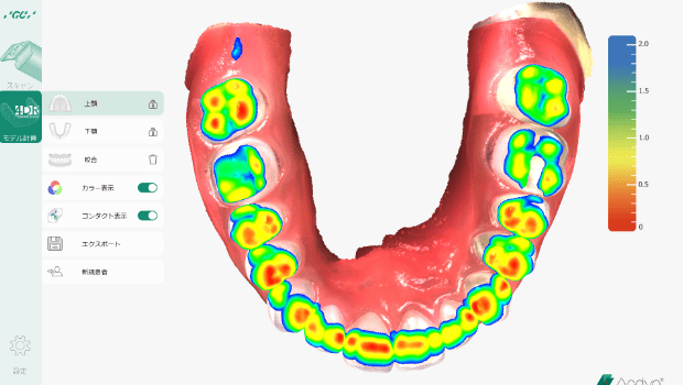 咬合状態における上下顎間の距離をカラー表示で確認できます。
