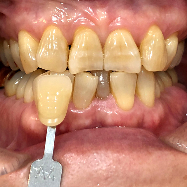 ホワイトニング前の色はA2でした。歯科医師の診断後、14日間のホームホワイトニングを開始しました。