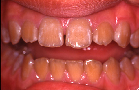 1910年代に歯のフッ素症がはじめて報告されて以来、生活歯(神経が生きている歯)に出現する白色や橙褐色の斑点により前歯の審美性に悩みを持つ患者が出てきました。また、1950年代から出現したテトラサイクリン系抗菌薬服用による変色歯は、フッ素症歯以上に審美性を損ねる原因となりました。1963年に米国FDA(日本の厚生労働省に似た役割を持つ政府機関)がテトラサイクリン系抗菌薬を妊産婦や乳幼児に服用させることに警告を発したにもかかわらず、1970~80年代にかけて変色歯を持つ患者さんが急増しました。