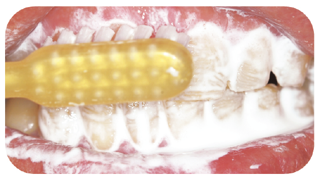 やわらかいブラシで60秒を目安に全体を磨いて洗い流す