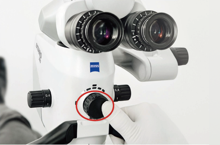 操作を全て顕微鏡の中心部に集約しました。光量調節、対物レンズ操作時もハンドルから手を放すことなく、片手のみの操作を行うことができ、診療の妨げになりません。