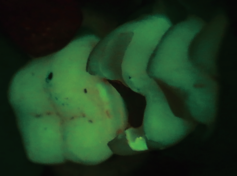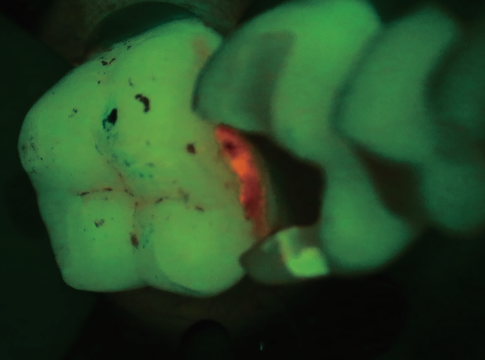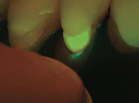 EXTARO 300に搭載されたFluorescence(蛍光)モードでは天然歯とコンポジットレジンの境界を識別することも容易になります。