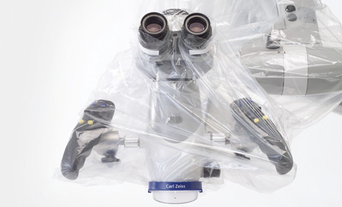 主に手に触れる顕微鏡本体部を覆うタイプのほかにサスペンションシステムS 7のアーム部全体を覆う大型ドレープがあります。また鏡基部までを覆うミニドレープもあります。