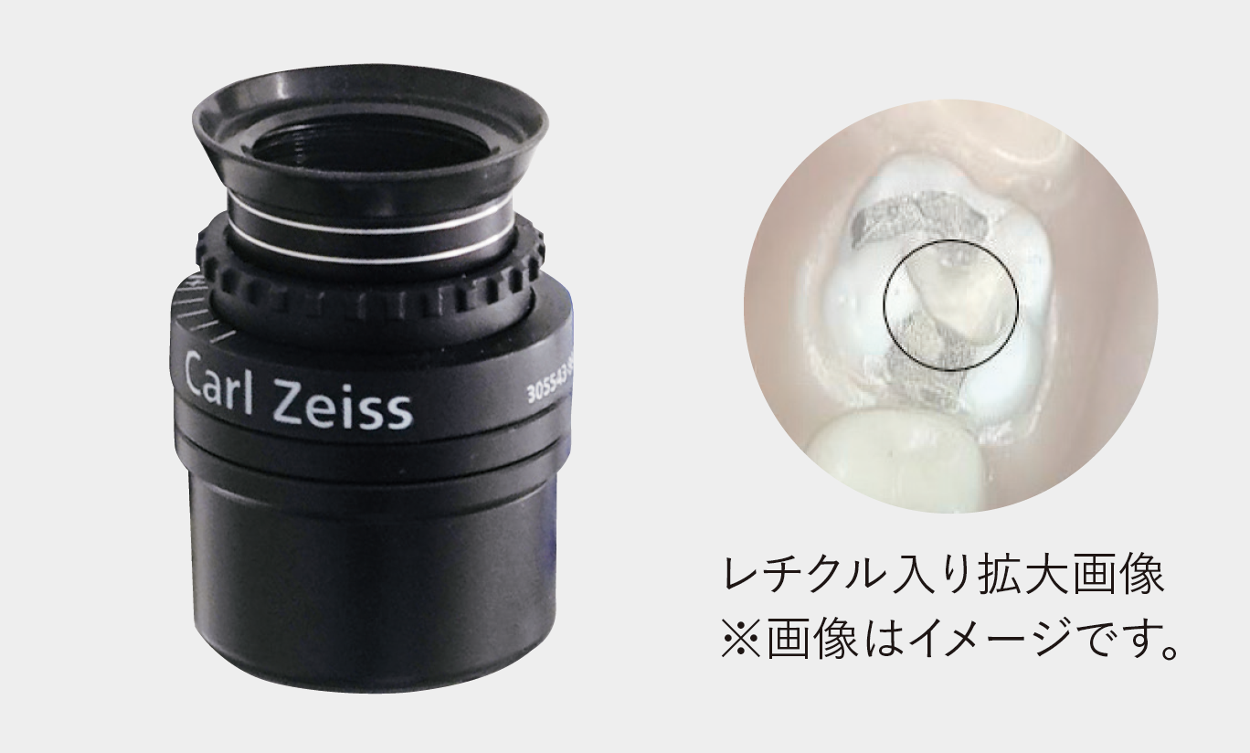 アイピース(片側)にレチクル(丸形の照準)が搭載されています。撮影したい部位に照準を合わせることで、治療部位をカメラ画面の中心に配置しやすくなります。