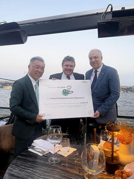 Furthermore, in early July 2023, Chief Corporate Advisor Makoto Nakao and the President of GC Europe made visits to the Turkish Dental Association and the Turkish Dental Businessmen Association, offering their condolences for the earthquake and explaining the donations of products amounting to 100,000 euros in value and the GC Group’s support measures.