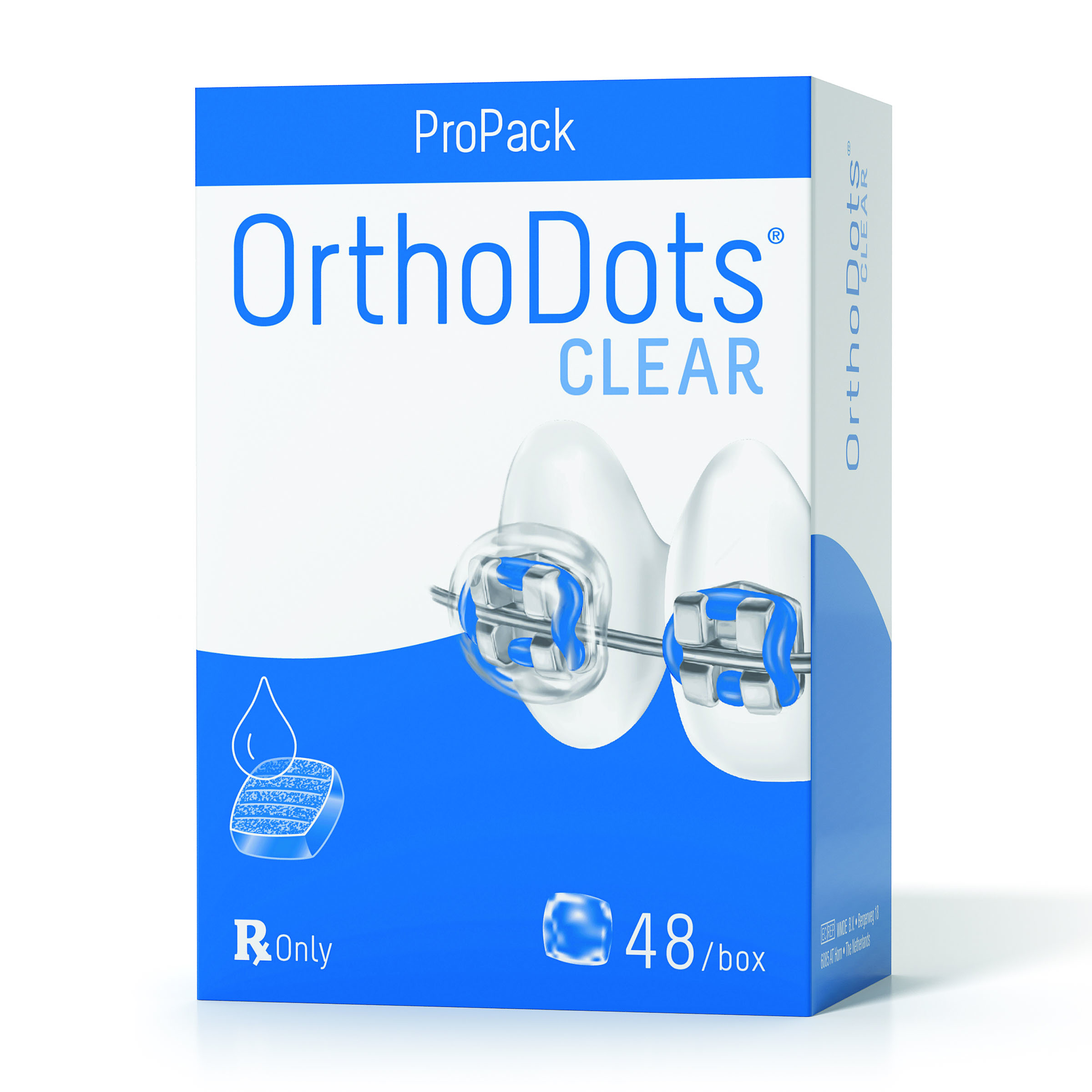 Ortho Dots ® CLEAR are made from a medical grade silicone that is preferred over orthodontic wax because it performs better, is transparent, and provides hygienic packaging for safe patient and in-office use. Safe to use while eating and drinking, non-toxic if swallowed, and latex free.