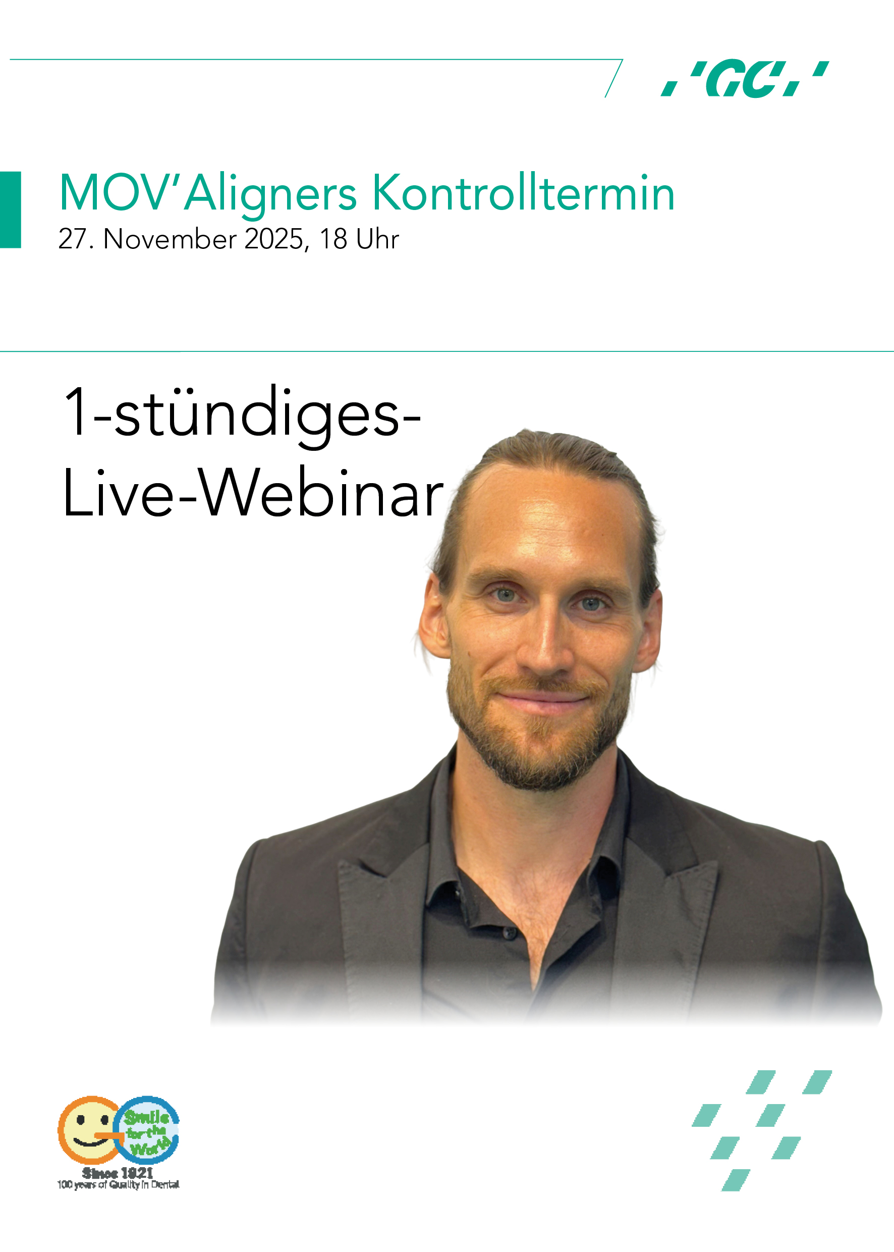 Was ist beim Kontrolltermin wichtig? Dieses kurze Webinar zeigt, worauf Sie bei der Verlaufskontrolle mit GC MOV’Aligners achten sollten – von der Passung der Aligner über den Attachment-Check bis hin zur Beurteilung des Behandlungsfortschritts. Praktisch, kompakt und direkt umsetzbar.