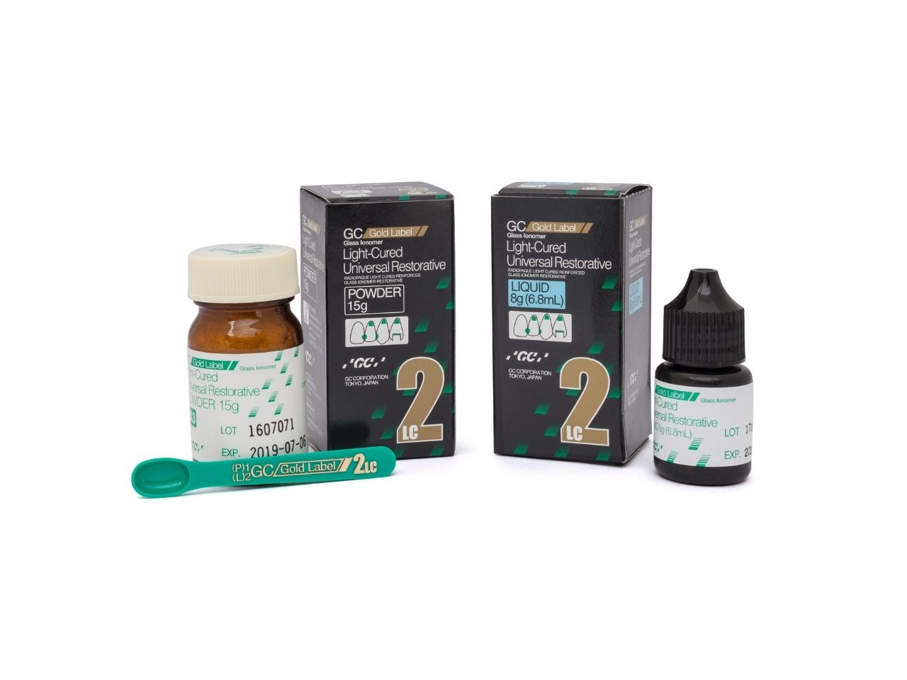 GC Gold Label 2 LC has smaller glass particles which allow greater density and assures a smoother, glossier, more attractive finish. The harder material offers higher abrasion resistance so the restoration retains a brilliant, longer discoloration-free surface finish. Nothing rivals Gold Label 2 LC Restorative in aesthetics, simplicity and economy when it comes to Class III and Class V Restorations, cervical erosions/abfraction lesions, and root surface caries liner/base.