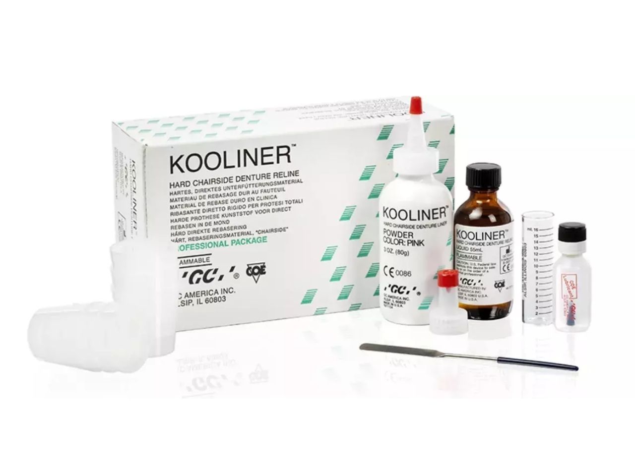 KOOLINER™ is a hard, chairside reliner that has been formulated for reduced exothermic heat. This product can completely self-cure in the patient's mouth in approximately 10 minutes.